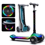 Самокат 3-колёсный ROCKET свет. колеса PU,нагрузка 50кг, цвет бирюзовый R0200 / 482602